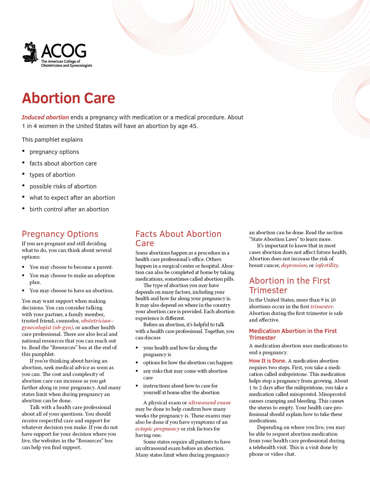 The Abortion Care digital pamphlet provides a comprehensive overview of abortion for your patients, with content including: