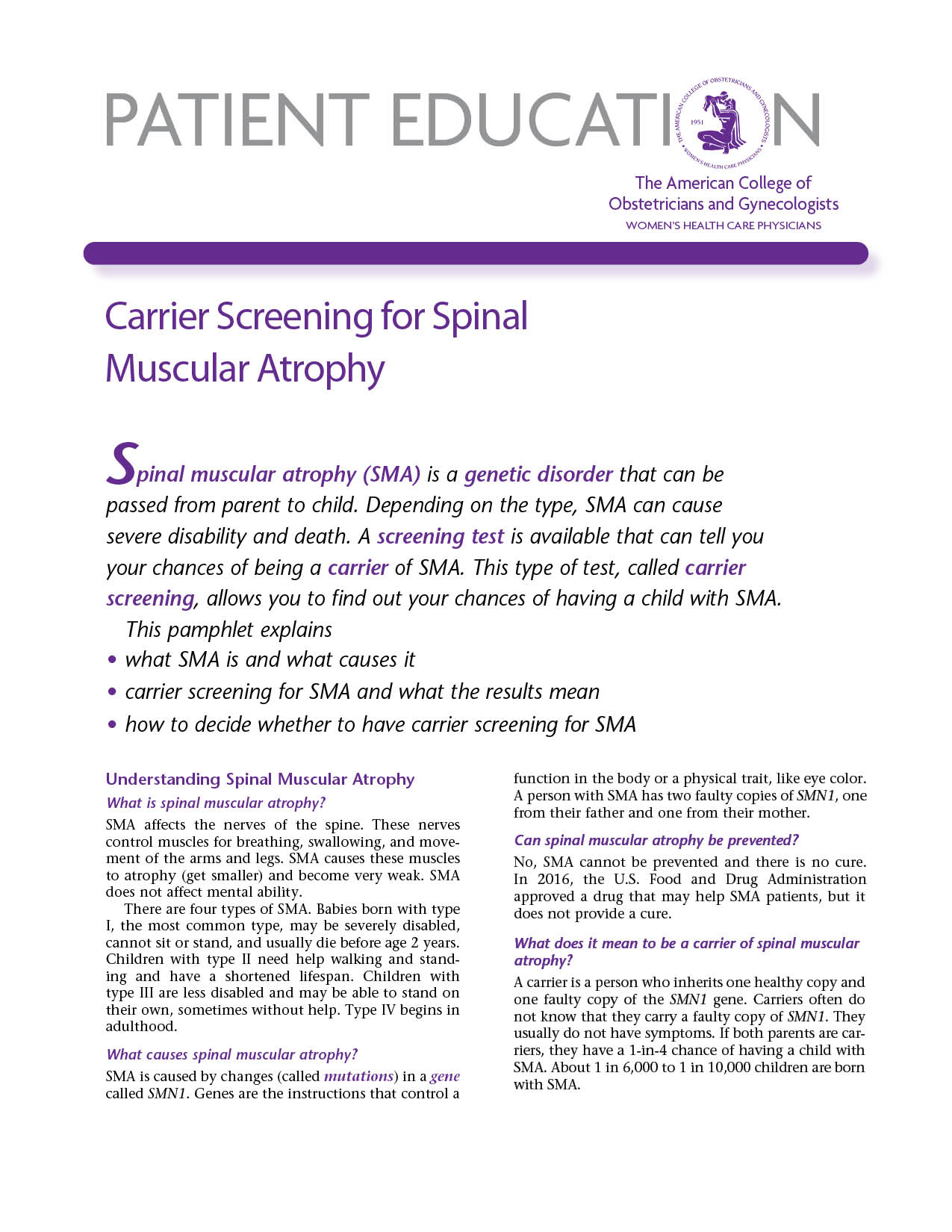 The Carrier Screening for Spinal Muscular Atrophy pamphlet offers easy-to-understand information for your patients considering this screening test. The content includes: