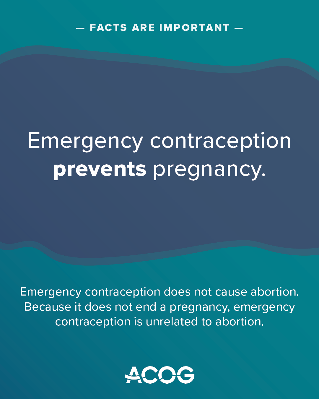 Image text: Emergency contraception does not cause abortion. Because it does not end a pregnancy, emergency contraception is unrelated to abortion.