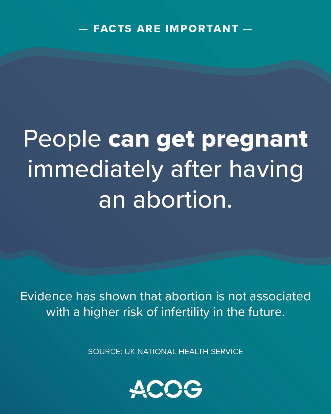 Image text: Evidence has shown that abortion is not associated with a higher risk of infertility in the future.