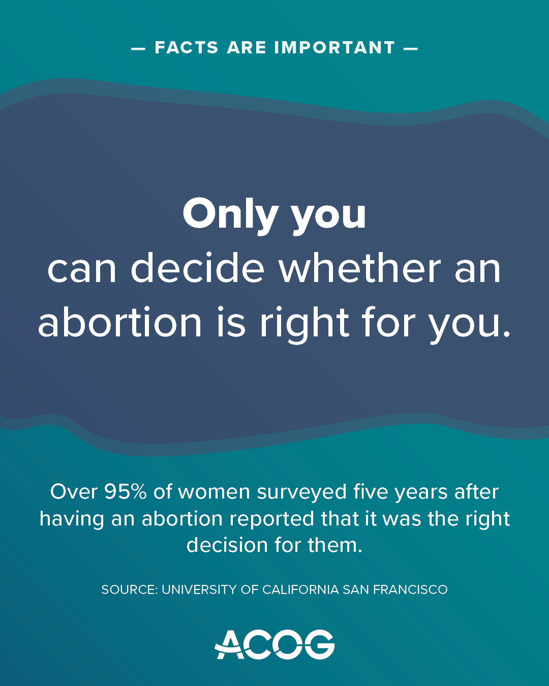 Image text: Over 95% of women surveyed five years after having an abortion reported that it was the right decision for them.