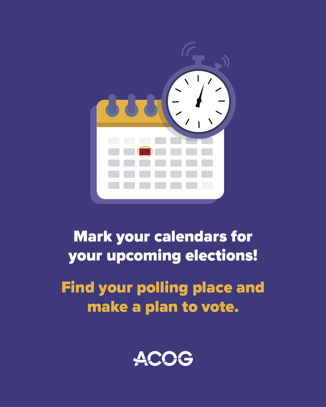 Once you’re up to speed on ACOG’s policy priorities, review the National Conference of State Legislatures’ 2026 election calendar to find dates of upcoming elections.