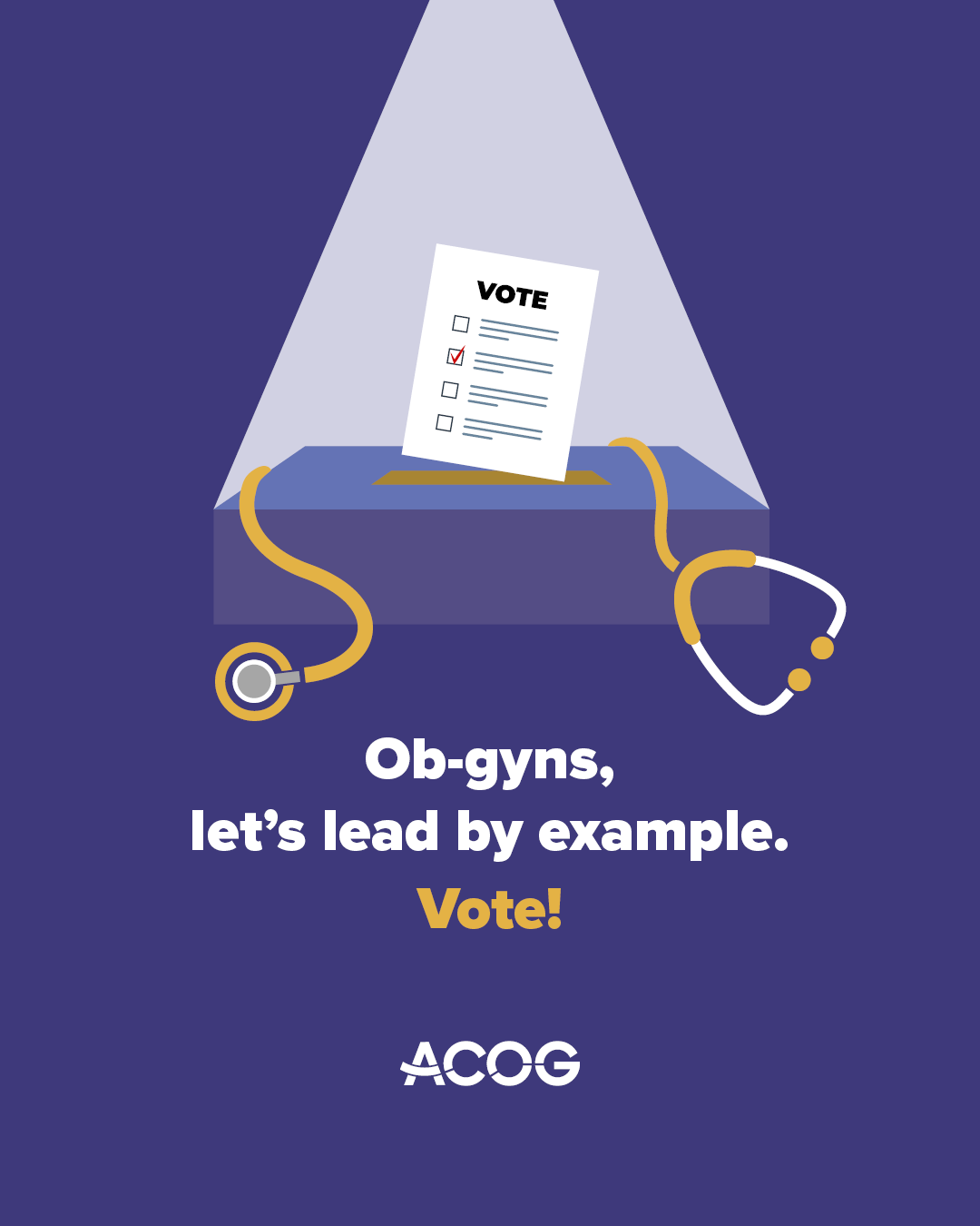 Let’s band together for our patients and our profession! Ob-gyns, make sure you vote. Our future—and your patients’—depends on it. #ObGynsVote #HealthCareVote #Elections