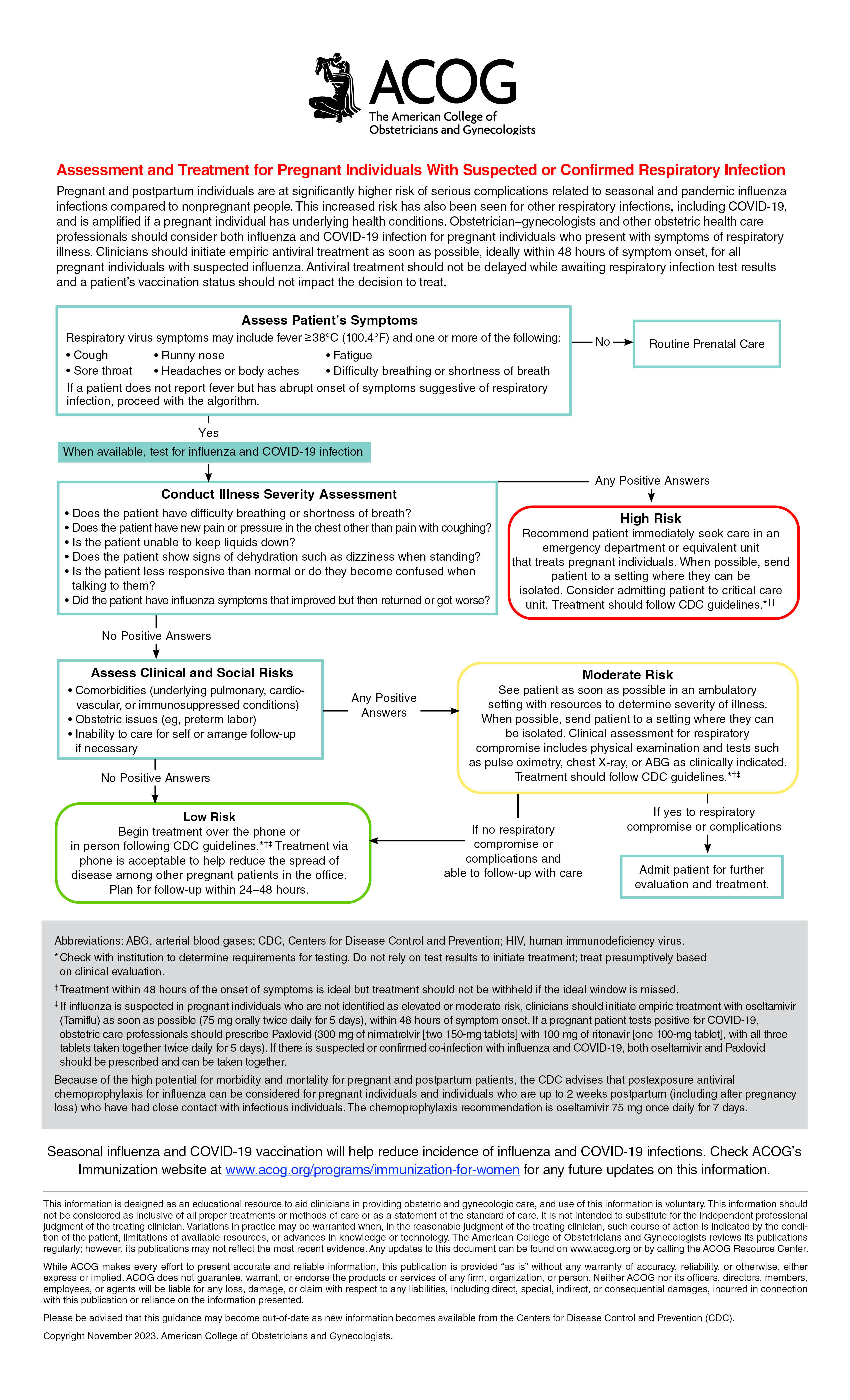 For more information on assessing suspected influenza, please see ACOG’s algorithm, Assessment and Treatment for Pregnant Women with Suspected or Confirmed Influenza.