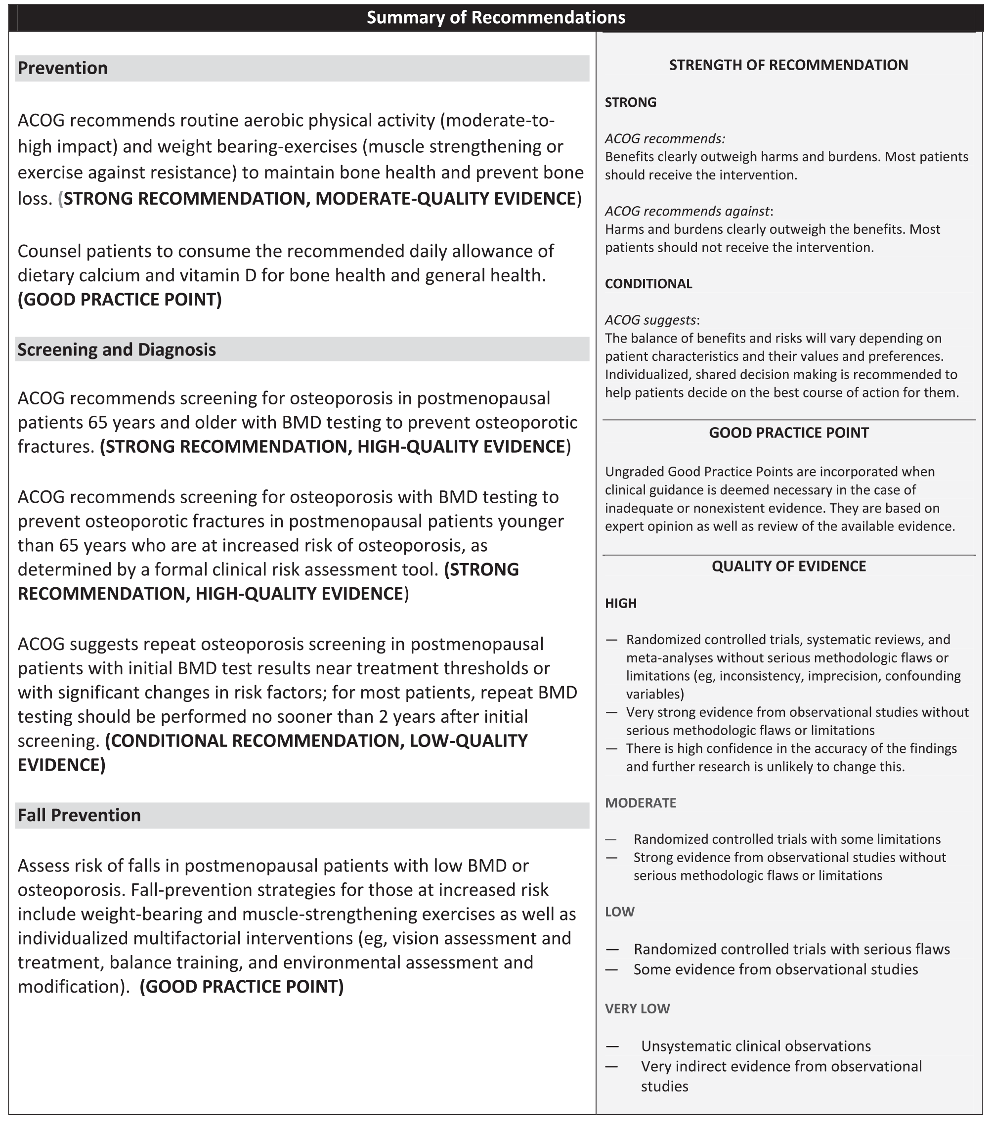 To provide updated evidence-based recommendations for the prevention, screening, and diagnosis of postmenopausal osteoporosis.