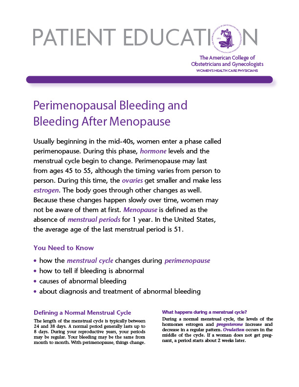 Perimenopausal Bleeding and Bleeding After Menopause presents easy-to-understand information for patients. The content covers: