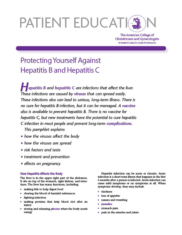 The digital pamphlet Protecting Yourself Against Hepatitis B and Hepatitis C offers clear and concise information for your patients. Topics include: