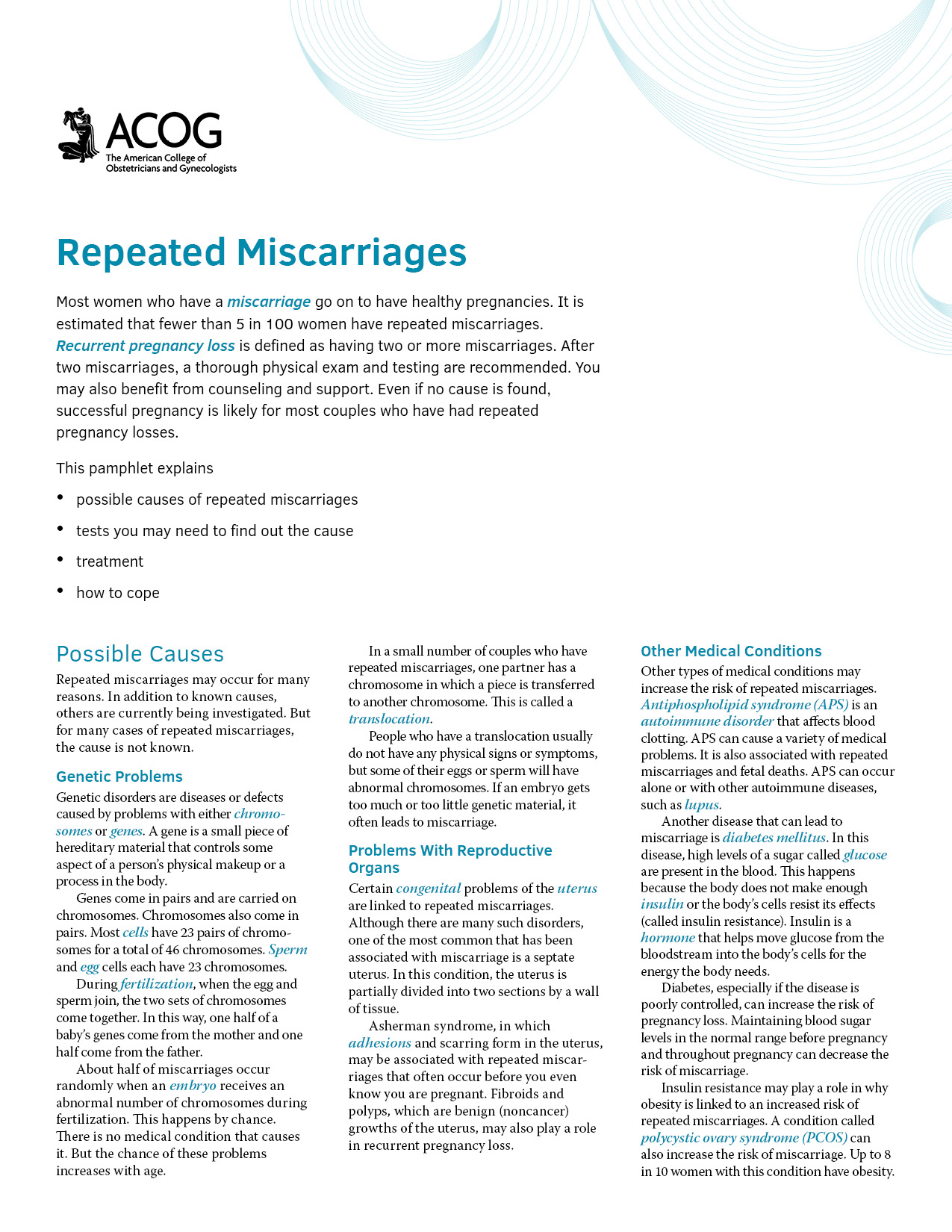 - Possible causes of repeated miscarriages