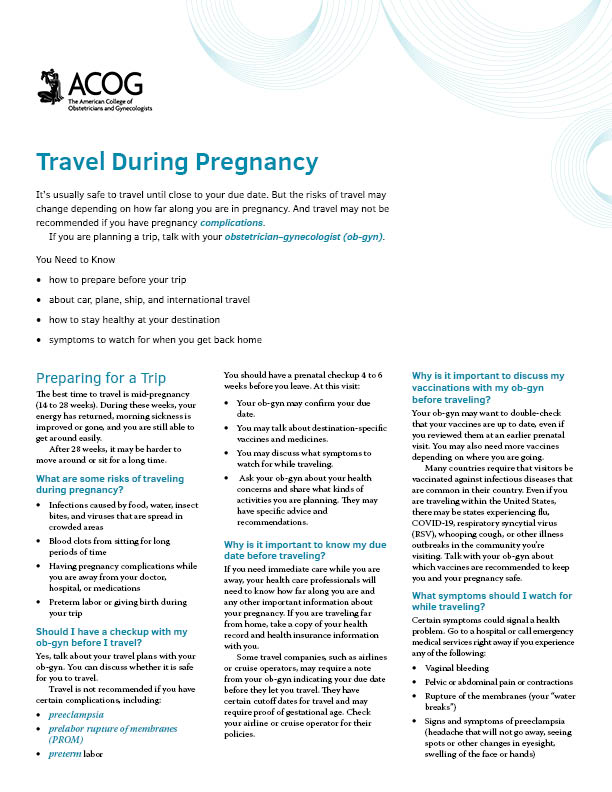 Travel During Pregnancy offers clear and useful guidance for your pregnant patients. This resource covers:
