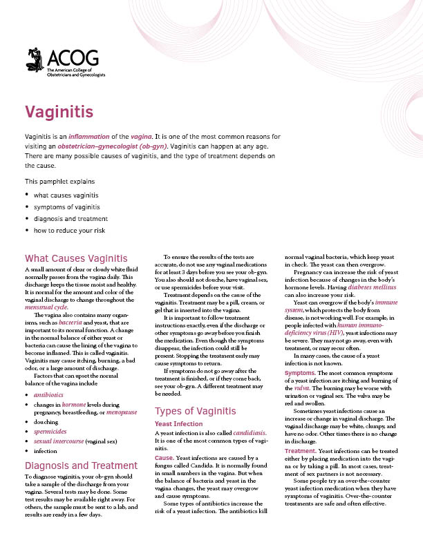 The Vaginitis pamphlet offers concise and clear information for your patients. Content includes: